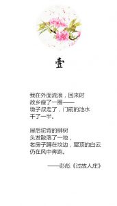 没想到现在的大学生也可以写出如此感人的诗歌。 《过故人庄》 —彭彪 我在外面流浪,回来时 故乡瘦了一圈 墩子叔走了,门前的池水 干了一半。 屋后驼背的柳树 头发散了一地, 老房子蹲在坟边,屋顶的白云 仍在风中奔跑。